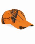 Structured six-panel, mid-profile cap heads out with a camo trim visor and camo undervisor.