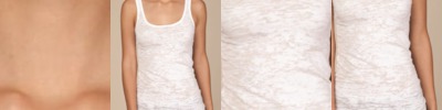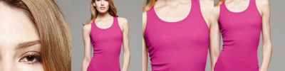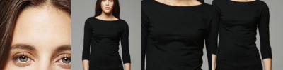 - Contrast color panels at side seams and underarms
