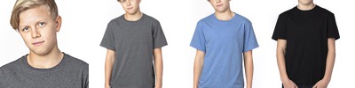 4.1 oz., 50% polyester, 38% combed ringspun cotton, 12% rayon; 7.8 oz./lin yd., 50% polyester, 38% combed ringspun cotton, 12% rayon; Frosted vintage heather triblend yarn; Smooth surface ideal for screen printing; 32 singles; Retail fit; Side-seamed; Tear away label;