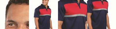4.8 ounce 50% polyester/50% cotton jersey knit * Contrast color V-neck collar * Set-in sleeves with contrast color sleeve stripes