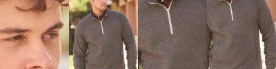 7.5 oz., 55% cotton, 39% polyester, 6% rayon triblend fleece; 1/4-zip placket with off-white zipper tape; Rib collar, cuffs, and waist; Welt pockets;