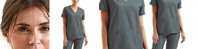 - V-neck style with two front pockets