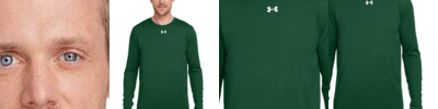 - UA woven label centered on left sleeve hem and UA heat seal center back neck
